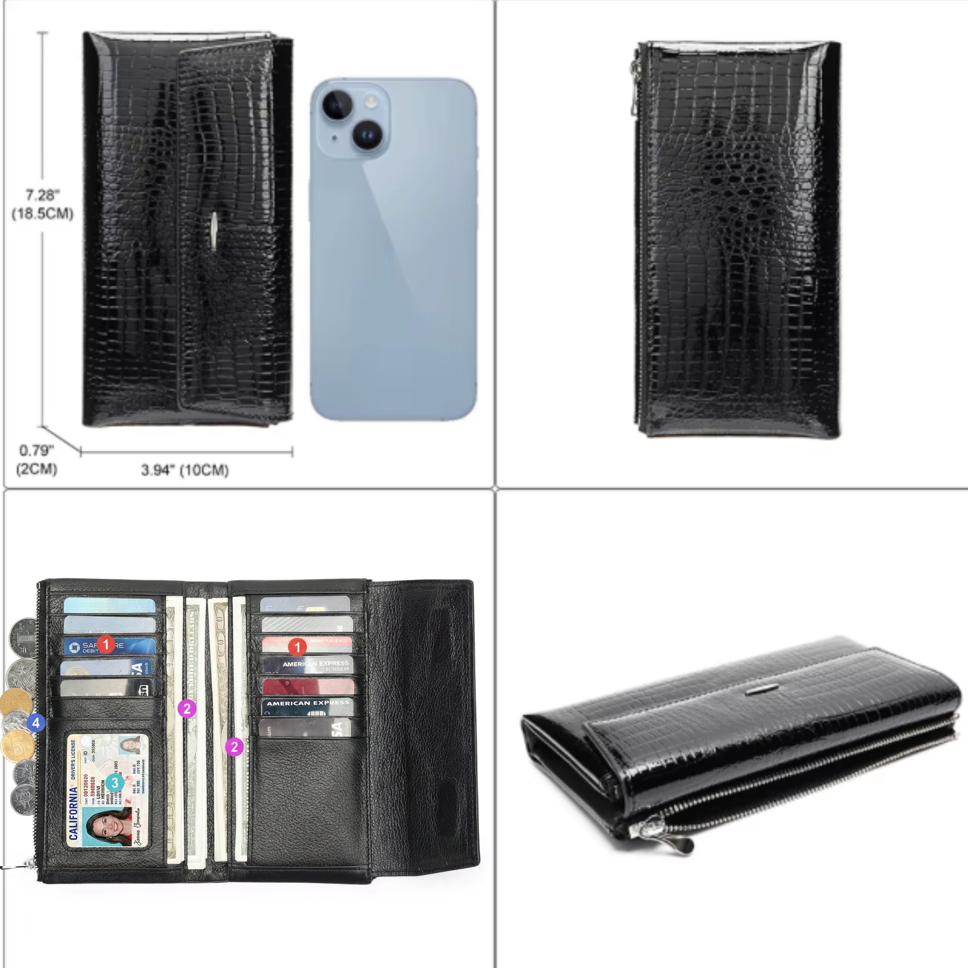 Elevate your accessory game with this sophisticated women's long wallet, crafted from genuine leather with a stunning high-gloss crocodile embossed texture. This versatile piece functions perfectly as both a spacious everyday wallet and an elegant evening clutch. The sleek design features a flap closure accented with a subtle vertical silver tone bar, opening to reveal an organized interior with multiple credit card slots and compartments for bills. A convenient zippered pocket on the side provides secure storage for coins or small essentials. Available in three luxurious colors—classic Black, vibrant Scarlett Red, and deep Wine Red—this wallet is the perfect blend of fashion and functionality.