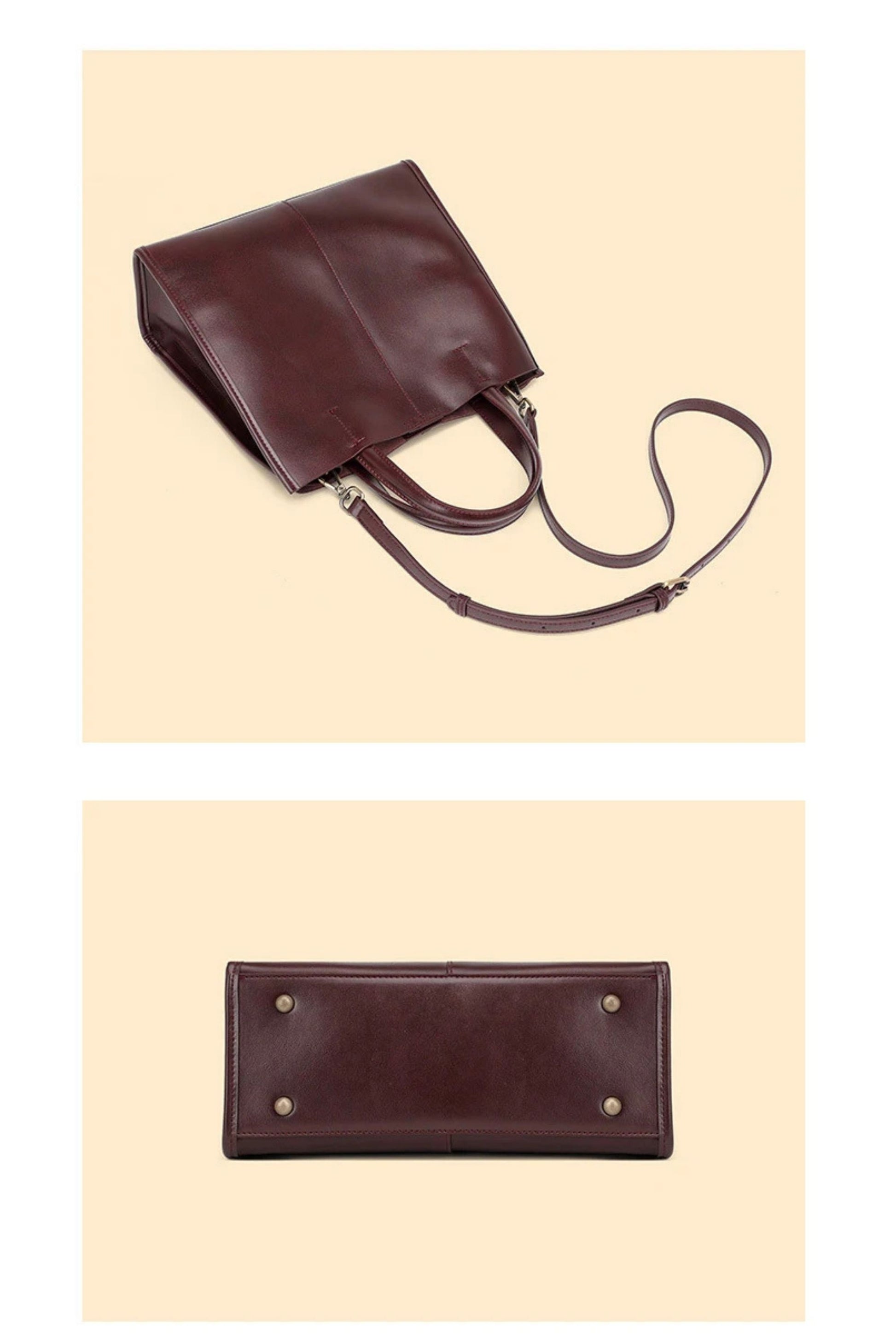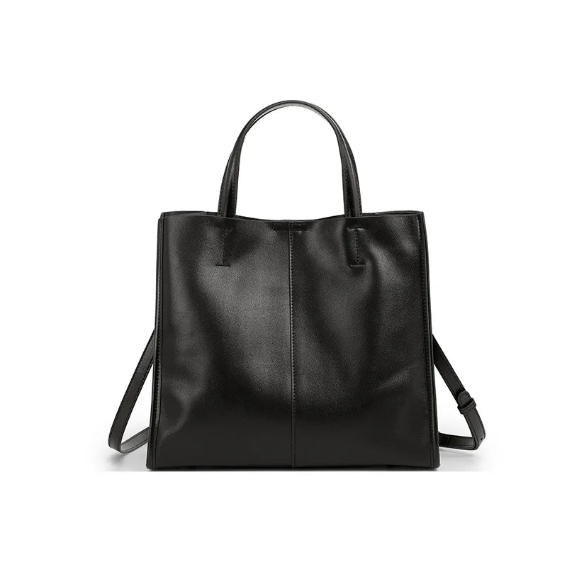rafted from premium cowhide leather, this versatile tote seamlessly transitions from shoulder carry to crossbody wear, adapting to your lifestyle with effortless elegance. The structured silhouette accommodates daily essentials while maintaining refined proportions, making it equally suited for professional settings, weekend errands, or travel. Available in four sophisticated colorways—black, apricot, brown, and coffee—each piece showcases the natural character of genuine leather that develops a distinctive patina with time, becoming more beautiful with use. The dual carrying options provide flexibility for different occasions, while the generous interior capacity ensures you carry what matters without compromise. Hand-finished details and quality construction reflect the meticulous craftsmanship expected of luxury leather goods. Whether paired with business attire or casual wear, this tote serves as a timeless investment piece that transcends seasonal trends. The authentic cowhide leather ages gracefully, developing unique character marks that tell the story of your everyday adventures.
